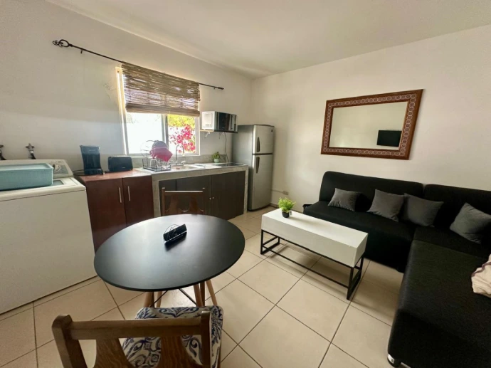 Amplio y cómodo departamento ideal para dos personas, con cama Queen Size, sala-comedor, cocina integral equipada, baño completo y patio privado. Perfecto para estancias largas, viajes de trabajo o una escapada relajante, con todos los servicios y amenidades de Hotel La Lejona.