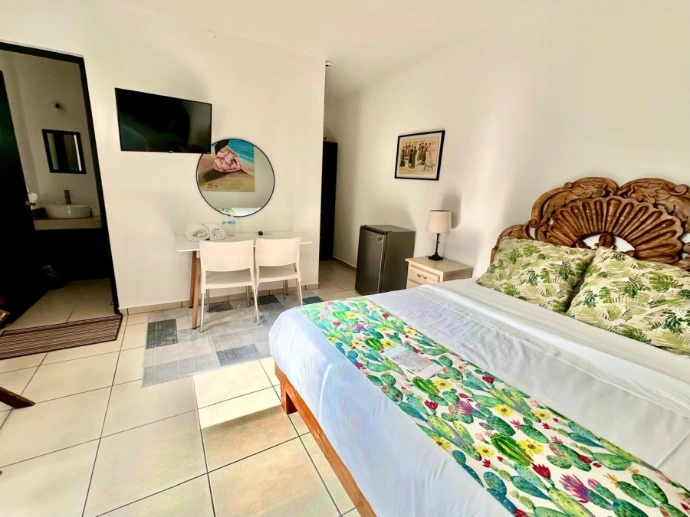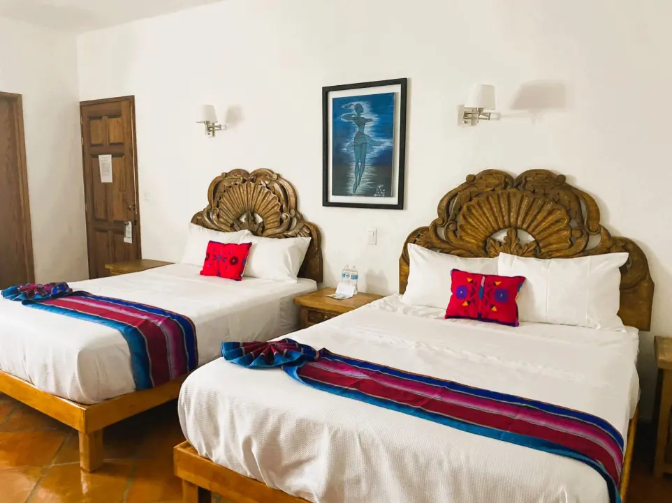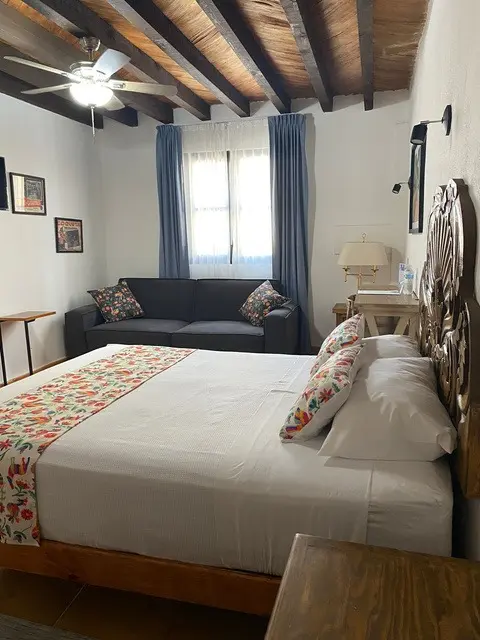 Nuestras habitaciones: Todas nuestras habitaciones cuentan ropa de cama de alta calidad, Wi-Fi, servicio de T.V inteligente y baño completo privado con servicio de agua caliente. Hemos combinado la calidez de textiles de vivos colores, cabeceras y muebles tallados a mano, pinturas de artistas locales que reflejan la esencia cultural de la región con la comodidad moderna para ofrecerte una experiencia inolvidable.